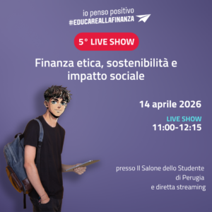 Il denaro può essere uno strumento di cambiamento. Da questa consapevolezza nasce il 5° Live Show di “Io Penso Positivo – Educare alla finanza”, in programma il 14 aprile 2026 presso Il Salone dello Studente di Perugia, con possibilità di seguire l’evento anche in diretta streaming.