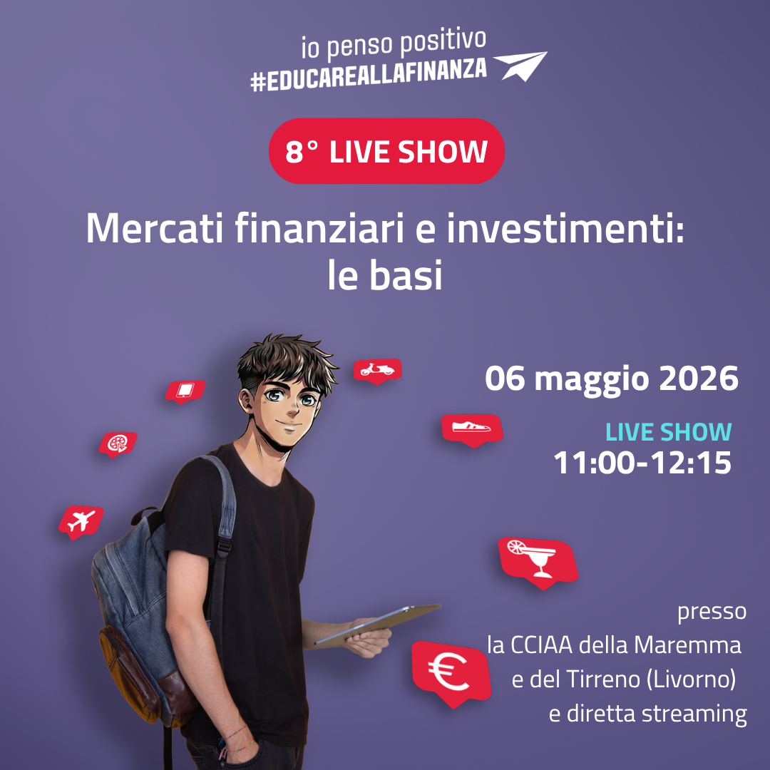 A queste domande risponde l’8° Live Show di “Io Penso Positivo – Educare alla finanza”, in programma il 6 maggio 2026 presso la Camera di Commercio della Maremma e del Tirreno (Livorno), con possibilità di partecipare anche in diretta streaming.